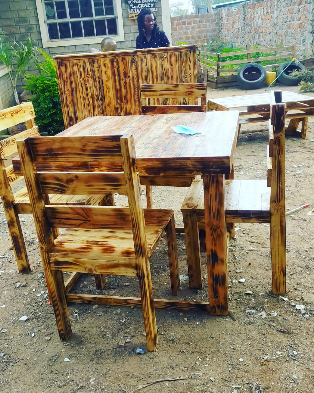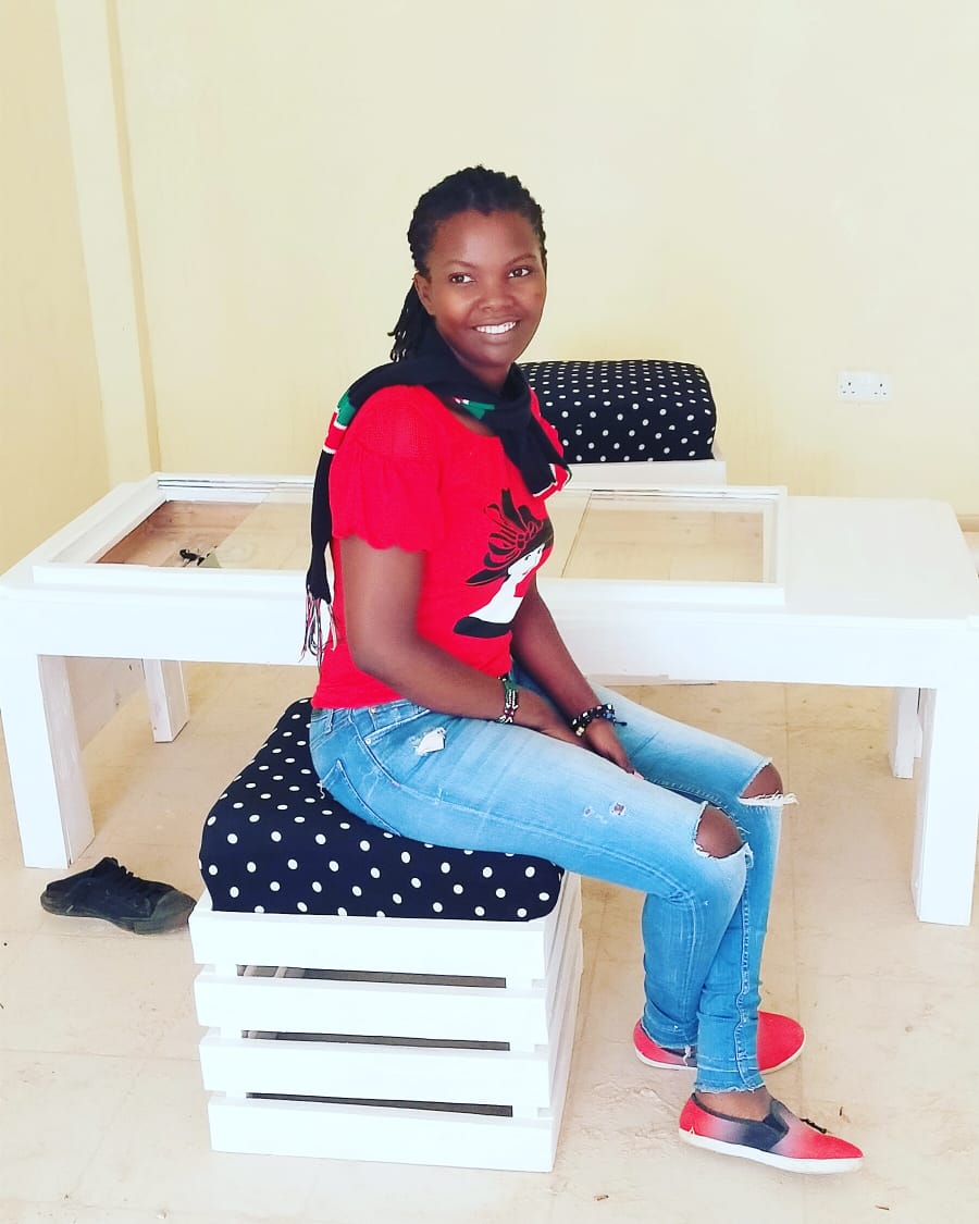 The government knows her as Catherine Wanjiru Chelang’a Soi, but her friends just call her ‘Soi Cate.’ Today she is a carpenter and runs her Soi Design Studio from her three-bedroom home in Ogango estate, Kisumu. She specializes in the production of rustic furniture – her pet raw material being wooden pallets.